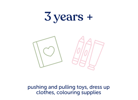 Best toys for toddlers 3 years old and up: Counting, reading, pushing and pulling with toys, singing songs, playing dress up, drawing, painting and colouring, letting your little one help with chores (toy mops are great for this!), setting up playdates and puzzling with your little one! All these activities can be crucial in helping your toddler become the independent, creative individual they’re destined to be.