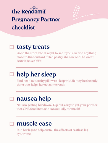 So…here are some examples of how you can help make sure your partner feels safe, loved and supported during her pregnancy (aka, examples which have worked for US!! 😉). Save it to your phone, and tick off as you go along! We like to call this ✨‘the Kendamil Pregnancy Partner checklist’✨:
