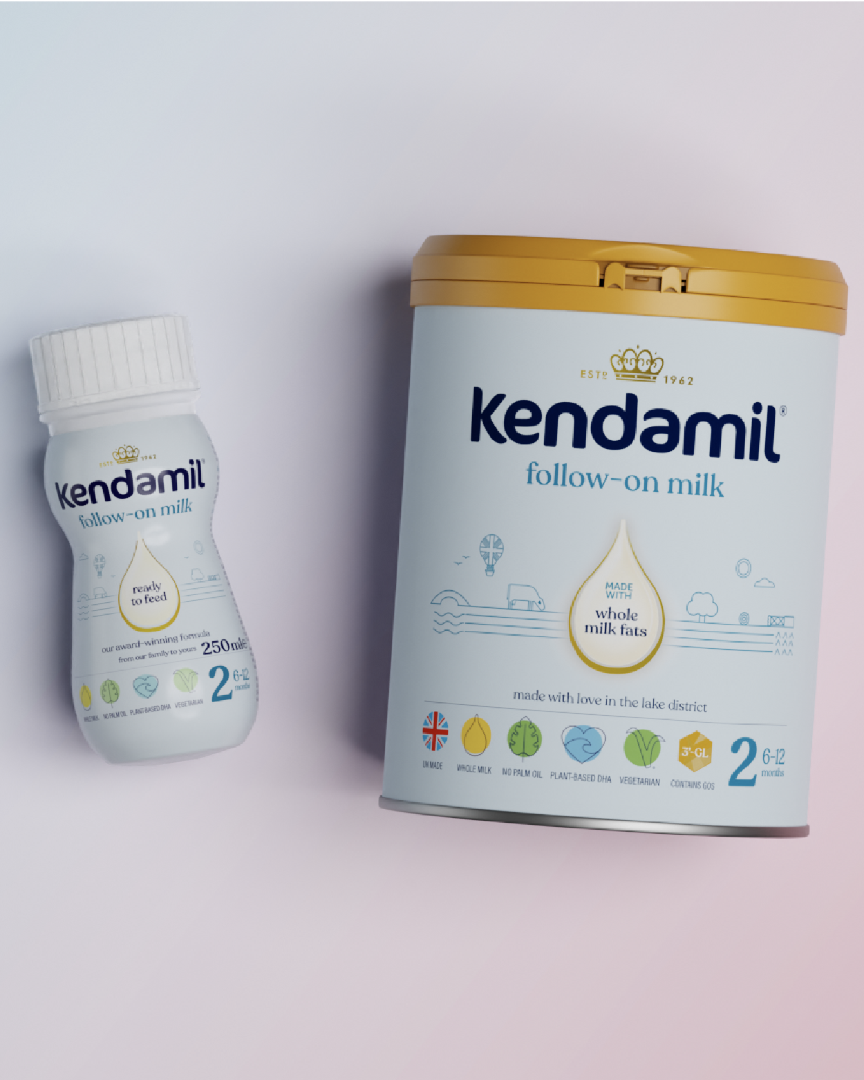 Building on decades of experience, our R&D team set out to formulate a formula product that is uncompromised in terms of the ingredients it uses and the processing it undergoes. When our unique whole milk recipe is born, it’s only fitting that we name it after the town it comes from – Kendal. Within 1 year Kendamil even found itself in Buckingham Palace!